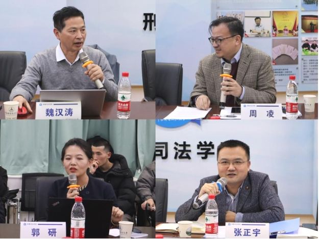(学生通讯员 聂红艳 摄影 刘令同卉)2023年11月24日晚7时,刑司新文科大讲堂——“网络暴力治理:基于刑事一体化的思考”主题学术会议在中南财经政法大学南湖校区文治楼二楼会议室成功举办。本次会议特邀中国人民大学法学院教授,中国犯罪学学会副会长田宏杰、同济大学上海国际知识产权学院教授,中国犯罪学学会副会长皮勇、华东政法大学纪检监察学教授,中国犯罪学学会副会长魏昌东、武汉大学法学院教授,中国犯罪学学会副会长陈家林、湘潭大学法学院教授,湖南省刑事法治研究会会长黄明儒以及北京师范大学法学院教授,中国犯罪学学会副会长赵军作为发言人。中南财经政法大学刑事司法学院院党委书记张志刚发表致辞,刑事司法学院教授、中国犯罪学学会副会长郭泽强主持会议,刑事司法学院教授、刑事科学研究院副院长魏汉涛,刑事司法学院教授周凌,刑事司法学院副教授、武汉市江岸区检察院副检察长张正宇,西北政法大学刑事法学院副教授、中国犯罪学学会理事郭研出席现场,刑事司法学院部分博士、硕士研究生参加会议。
