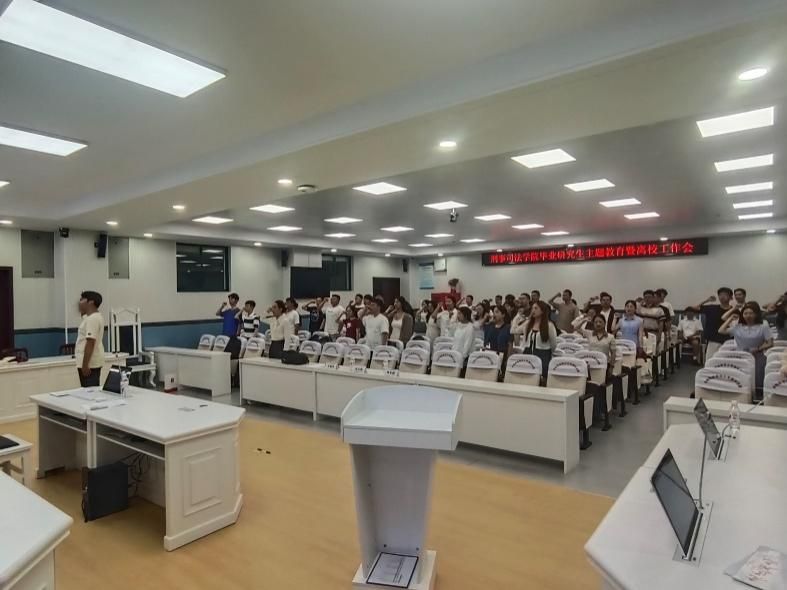 6月21日下午,硕士生2021级刑法学党支部和公安学党支部于文泰楼模拟法庭二开展毕业生党员专题教育活动暨6月份主题党日活动,本次活动主题是严守党的“六大纪律”。刑事司法学院党委书记张志刚,研究生办公室主任、辅导员王晓丹,辅导员柯希鹏出席活动。