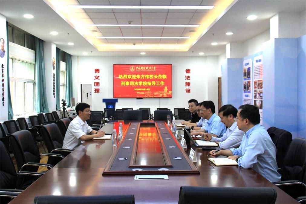 新网网讯(通讯员 刘宇 摄影 柯希鹏) 10月14日下午,中南财经政法大学校长、党委副书记朱方伟专程来到刑事司法学院走访调研,关心了解学院发展,亲切慰问学院师生。学院党委书记张志刚、副院长董邦俊、周凌和党委委员焦俊峰等参加座谈。
