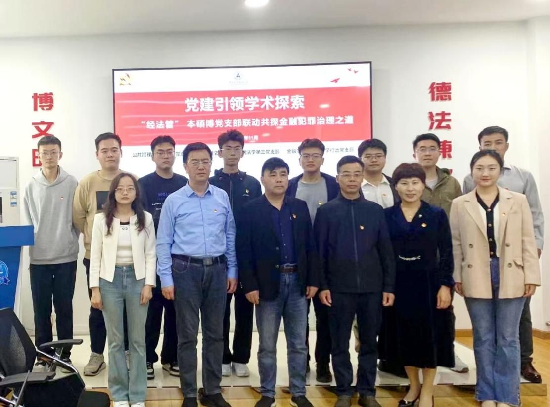新闻网讯(通讯员 柯希鹏郭东来 摄影 杨晨宇)为加强跨学科学生党支部交流互动,助力“经法管”融通型人才培养,11月14日下午,刑事司法学院联合金融学院、公共管理学院举办“党建引领学术探索——‘经法管’本硕博学生党支部联动共探金融犯罪治理之道”主题党日活动。金融学院党委书记汪平、公共管理学院党委书记王建荣、刑事司法学院党委书记张志刚、金融学院党委副书记朱诚蕾出席,辅导员王晓丹、江永鑫、柯希鹏,公共管理学院博士生党支部、刑事司法学院硕士生刑法学第三党支部和金融学院本科生乐学行远党支部60余名党员代表参与本次活动。