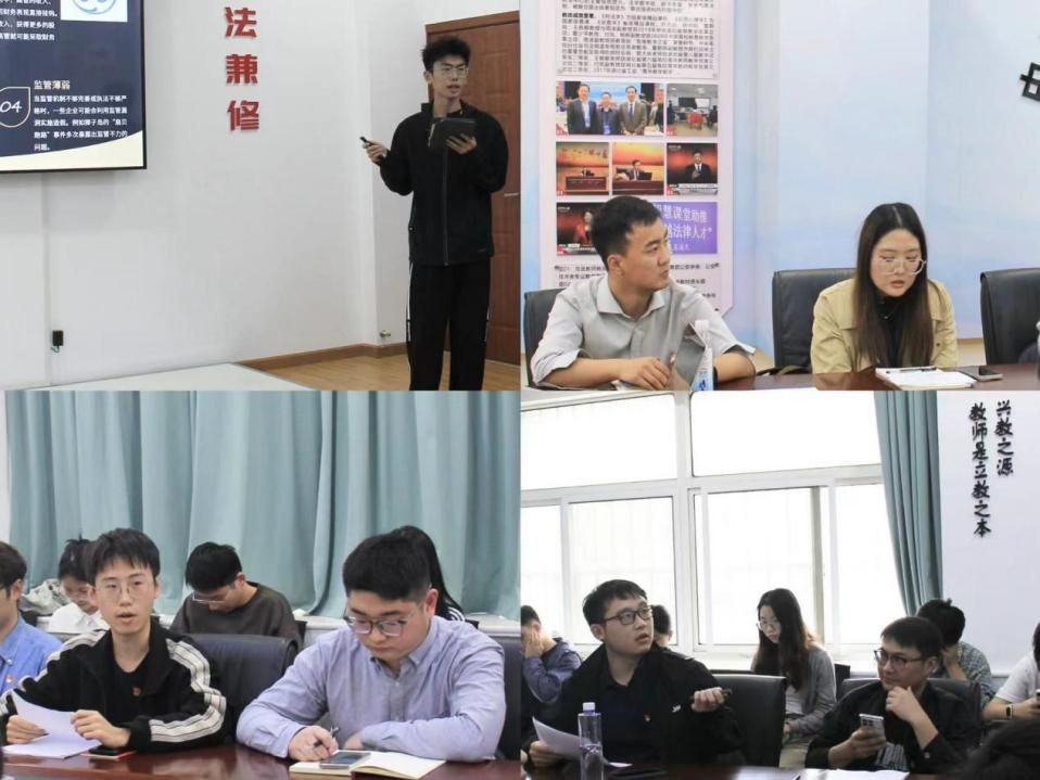 在主题研讨环节,各支部围绕“资本市场财务造假综合惩防问题”进行专项研讨。金融学院陈实介绍了资本市场财务造假动因和表现形式,公共管理学院史可、李佩纶提出了财务造假法律监督、社会监督等治理方法,刑事司法学院李楠分析了金融犯罪刑法体系以及法治发展方向。