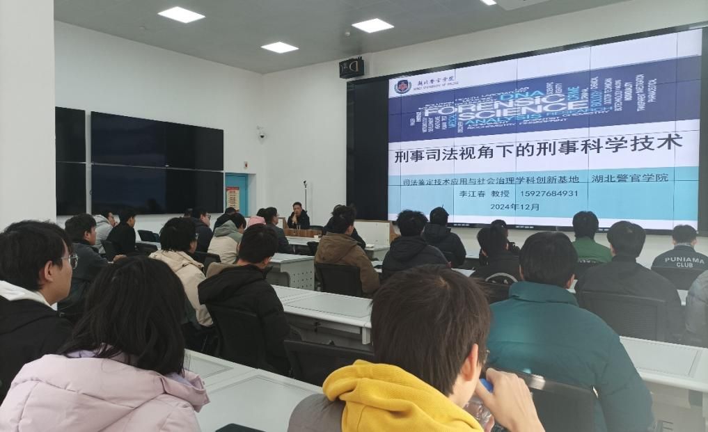新闻网讯(学生通讯员 刘振坤)为进一步激发中南财经政法大学刑事司法学院侦查学(法庭科学方向)2023级新生对法庭科学专业的认知与学习热情,2024年12月29日上午9时,一场精心筹备且极具专业深度的专题讲座在文清楼405成功举办。学院特别邀请现挂职司法鉴定技术应用与社会治理学科创新基地副主任的湖北警官学院刑事技术与情报系副主任李江春教授担任主讲嘉宾,以“刑事司法视角下的刑事科学技术”为主题进行讲授。