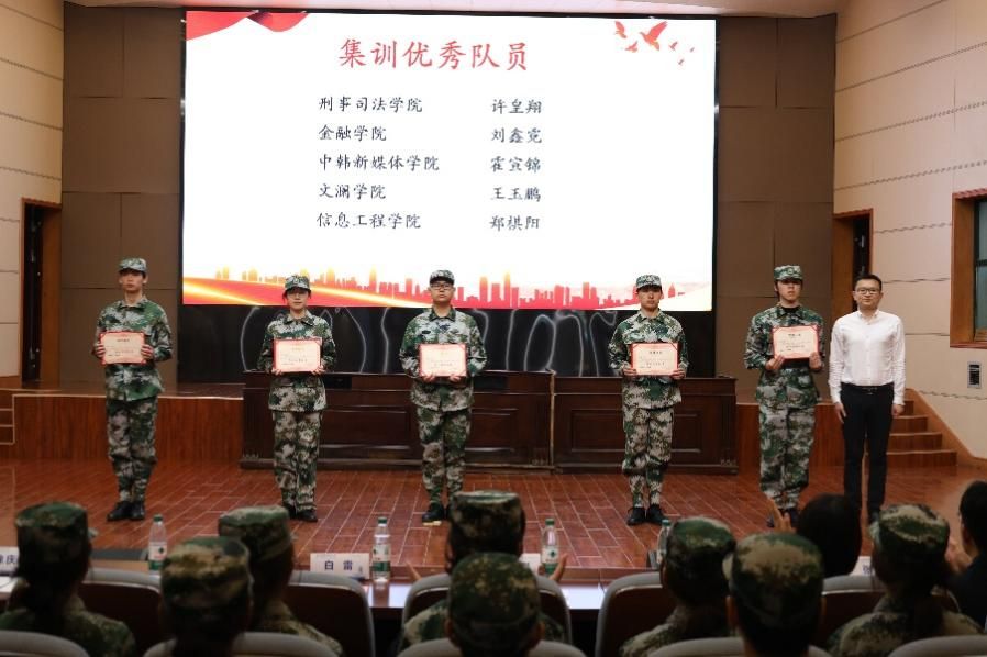 徐庆祥宣读《中南财经政法大学国旗护卫队第23届集训优秀队员名单》。白雷为他们颁发了荣誉证书。许皇翔作集训优秀队员代表发言,分享了队员们不畏艰辛、突破自我的故事。