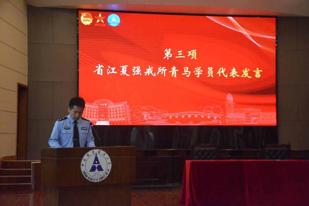 刑事司法学院党委副书记徐庆祥在主持中提到,青马学员们都应做到脚下有路,眼中有光,心中有信仰,始终秉持着求真务实的精神,用诗和远方激励自我,牢记自身身份,在青马工程的土壤中开出青春绚烂之花。