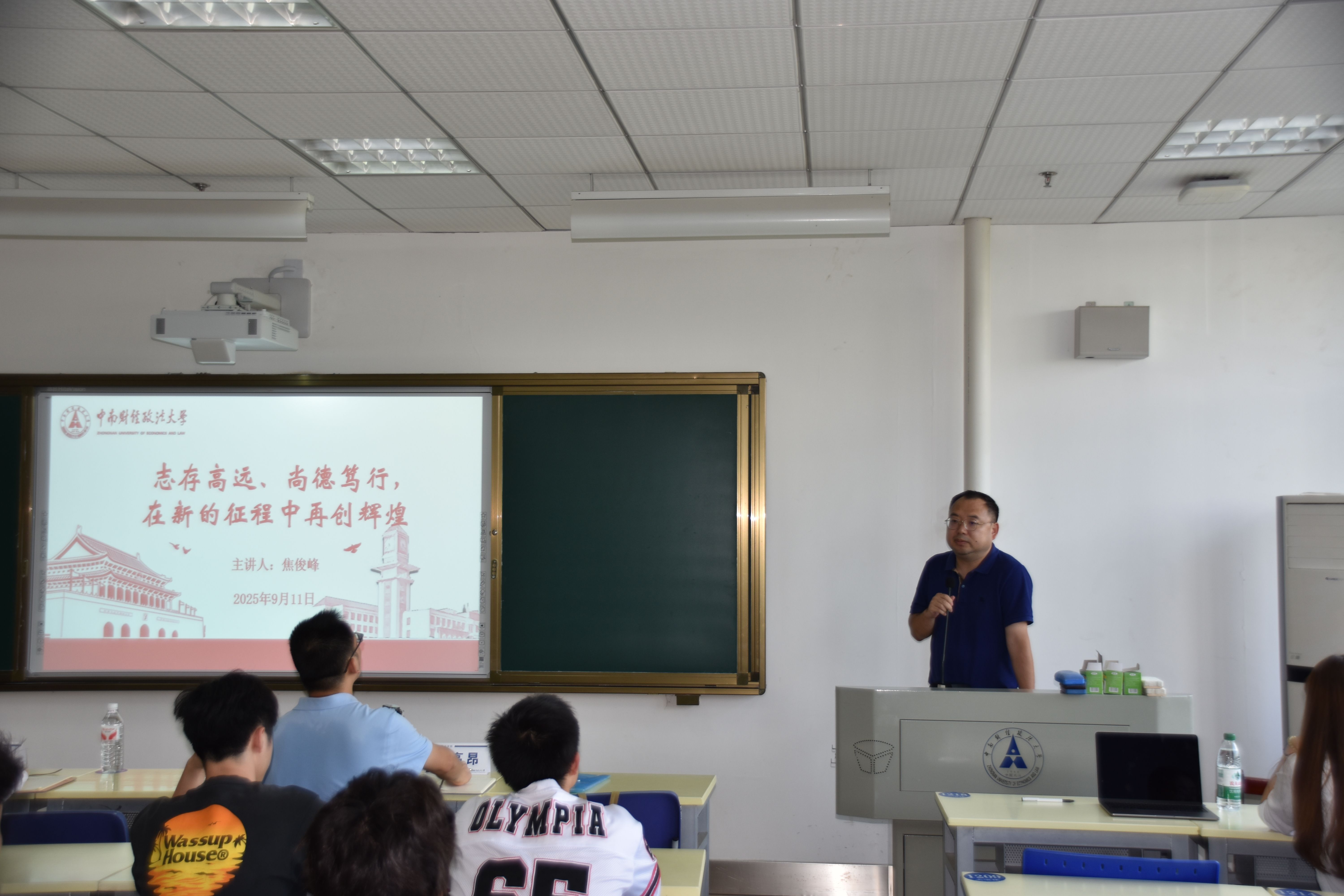 新闻网讯(学生通讯员 查盈盈 摄影 刘千硕)为深入学习贯彻习近平总书记关于研究生教育的重要指示精神,落实立德树人根本任务,切实做好2025级研究生新生入学教育工作,2025年9月11日,刑事司法学院于文澴楼215教室召开2025级研究生第一堂班会暨入学教育。刑事司法学院党委委员、副院长焦俊峰,刑事司法学院研究生办公室主任、研究生辅导员王晓丹,刑事司法学院兼职辅导员马高昂及2025级全体研究生参会,会议由刑事司法学院研究生会执行主席周雨奇主持。