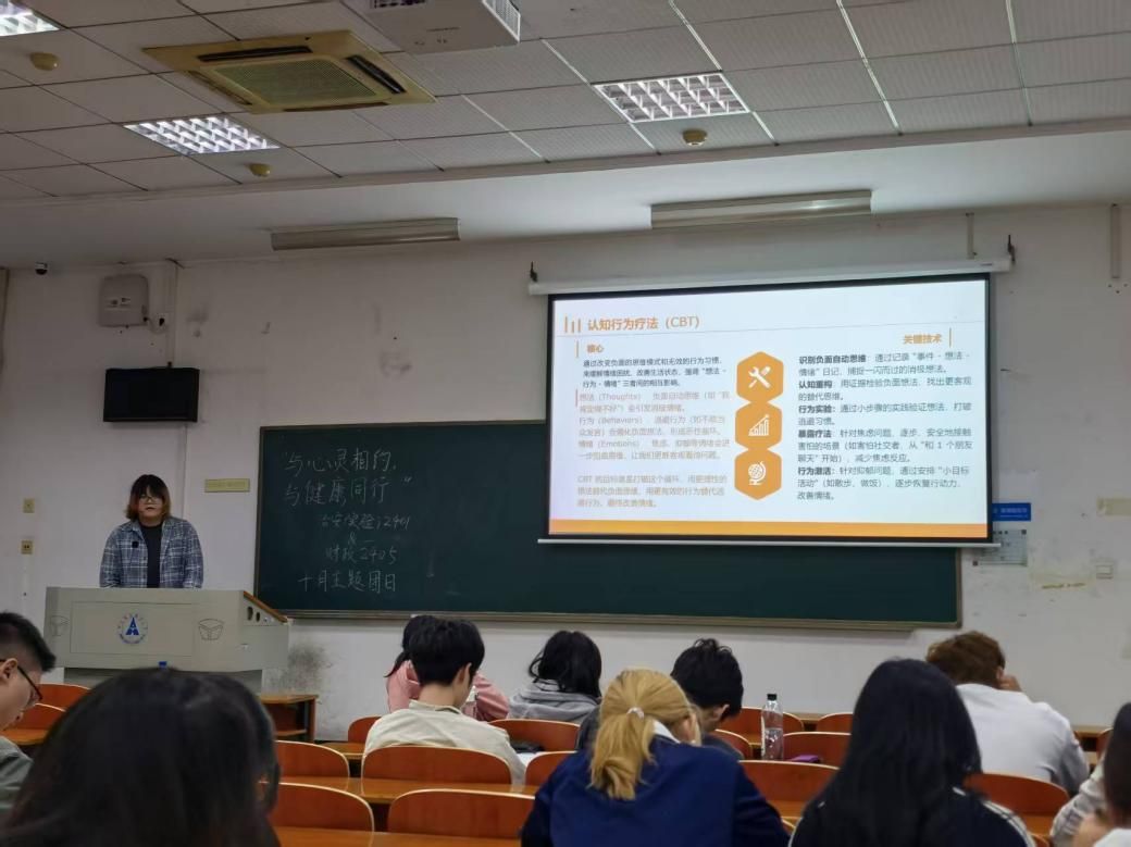 随后的“心情裁决”环节,吴爽引入认知行为疗法(CBT)的核心理念,结合刑事司法学院特色,引导大家以“法官”视角审视负面想法,通过“认知重构”与“行为实验”打破思维定式。她结合真实案例,生动讲解了如何用理性思维替代自动负性思维,提升心理韧性。