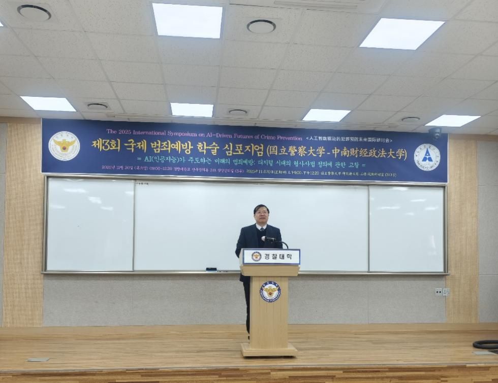 (李正新 刘心兰)11月20—21日,应韩国国立警察大学、韩国国立海洋大学联合邀请,中南财经政法大学刑事司法学院代表团赴韩参加“人工智能驱动的犯罪预防未来:共塑数字时代的明日正义”国际学术研讨会及“网络犯罪与数字取证国际学术会议”。我校原副校长闫平教授,刑事司法学院院长董邦俊教授,刑事司法学院李正新副教授,法与经济学院硕士研究生刘心兰一行四人全程参会,并与韩方高校就师资互聘、博士联合培养等议题达成深度合作共识。参会嘉宾还包括:韩国成均馆大学、庆南大学、尚志大学的学者,来自安哥拉、卢旺达等国的专家,以及三逸普华永道数字取证技术团队等实务部门的代表。