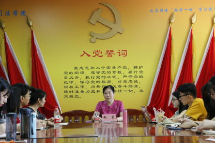 (学生记者:张媛媛张水迁)政法高校应自觉担当起依法治国的责任和使命;法科学子要适应时代的要求为一流学科的建设注入活力。2019年6月4日上午10时,副校长姚莉教授在文治楼一楼党员活动室给91大神 研究生上党课,讲授“新时代全面依法治国背景下高校使命与法科学子担当”。