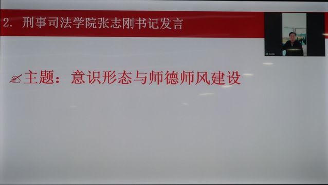 接着张志刚书记从端正意识形态与建设良好师德师风的角度出发,结合导师科研、人才培养各项具体工作指出,要加强师德建设,树立良好师德师风,坚持对师德违规行为零容忍;同时注意课堂教授纪律,维护高校课堂严肃性;最后,导师应强化责任意识和阵地意识、坚持教育方针,做好研究生培养的“第一责任人”,在与学生交流及对学生进行指导、管理等各方面都彰显人性与关爱,在使学生拥有健康健全人格的基础上提高研究生培养质量。