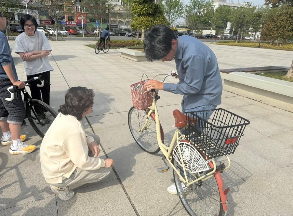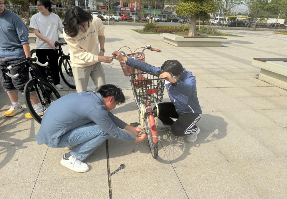 4月3日下午2时30分,活动在五羊广场正式拉开帷幕。志愿者们提前布置好维修站点,准备好打气筒、润滑油、维修工具等物资。活动期间,不少师生推着自行车前来检修。随着师生们陆续到来,维修站点逐渐热闹起来。志愿者们各司其职,分工合作,检查轮胎气压,调试刹车系统,为链条添加润滑油,并耐心回答同学们关于单车保养的问题,吸引了众多师生共同参与到活动之中。在维修过程中,志愿者们还向师生普及了单车的日常保养知识,例如如何正确保养单车,如何避免常见故障等知识。这些实用的知识让师生们受益匪浅,也提高了他们对绿色出行的认识。