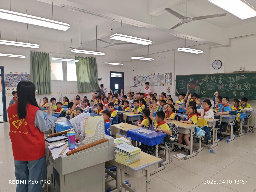 下午1时,在完成集合后,志愿者们统一前往光谷五小开展志愿宣讲活动。志愿者们借助图文展板和科普动画,全面讲解了国家安全的内涵和外延。讲解过程中,志愿者们普及了国家安全基础知识,帮助小学生理解国土安全、网络安全的重要性。志愿者们通过生动有趣的话语,为孩子们普及了国家安全知识,培养了他们的爱国情怀。