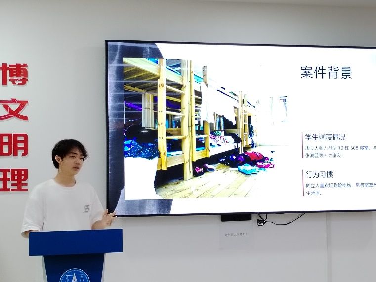 九支队伍的答辩代表经过抽签决定顺序,依次上台进行作品展示与案情分析。
