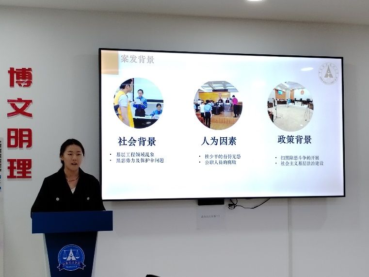 宇宙梦想队的代表同学通过对“杜少平案”的演绎复盘,真实重现了案件的翔实过程,给人以深思,突出了完善法治建设的重要性。