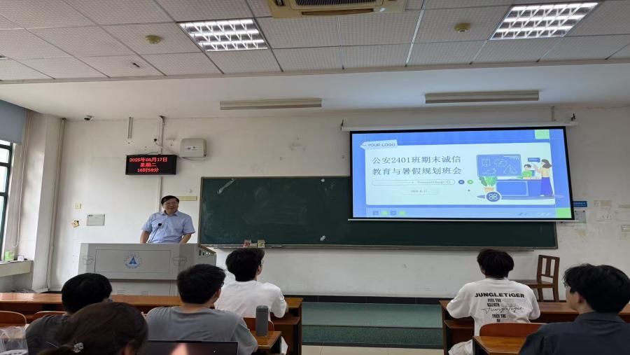(通讯员 赵鑫)为引导学生树立诚信考试意识,科学规划暑期生活,公安2401班班导师董邦俊教授于6月17日在文波208教室组织召开“期末诚信教育与暑假规划”主题班会。