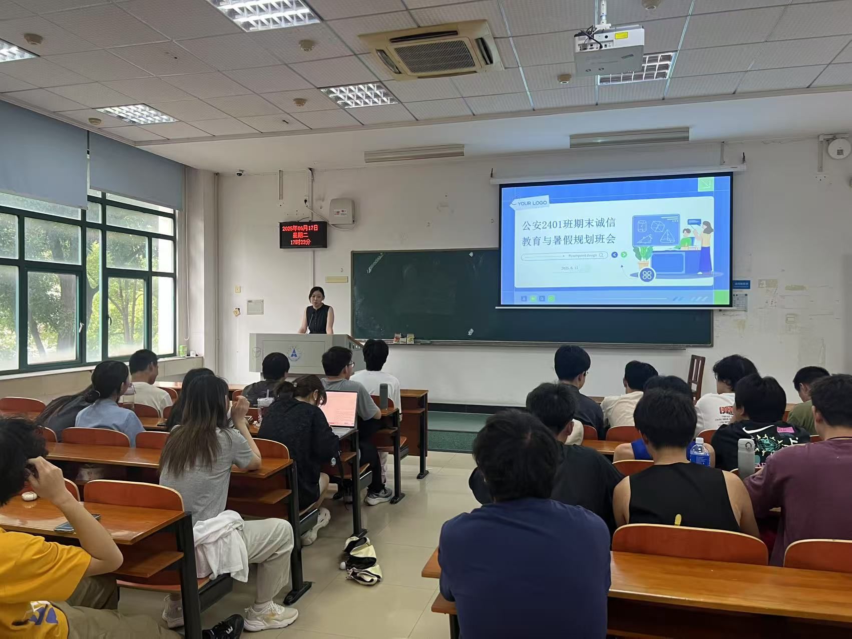 董院长讲话结束后,辅导员陆老师随即发言。她着重强调了大学生反诈问题,指出近期学院已发生三起网络诈骗案件,其中一起涉及金额重大。陆老师反复叮嘱同学们务必下载安装防诈APP,同时要时刻警惕,谨慎管理个人财物,切勿因盲目轻信他人而随意借钱。临近期末考试,陆老师提醒同学们提前制定复习计划,扎实备考,坚决杜绝任何违规违纪行为,以诚信态度迎接考试。针对即将到来的假期,要求大家离校前做好宿舍卫生清洁工作,妥善检查水电设施,消除安全隐患。