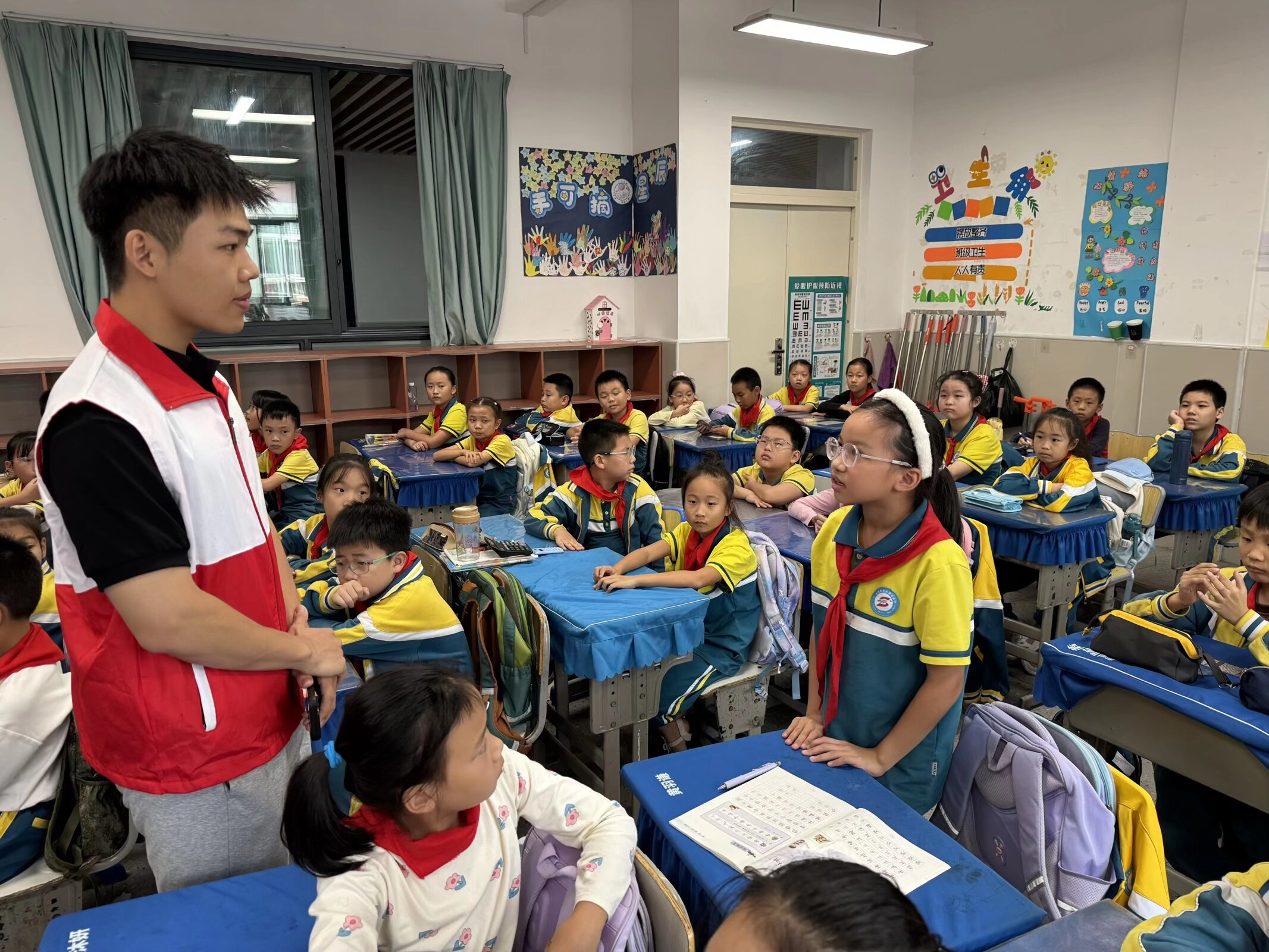 新闻网讯(学生通讯员 刘清远)为将红色火种深深播撒进青少年心田,2025年9月25日,91大神 志愿者协会星火志愿服务队与光谷五小携手,精心策划并开展“缅怀英烈铸忠魂,国庆同辉谱新篇”专场宣讲活动。青年志愿者们以青春之声为媒介,向小朋友们传递“不忘来时路、共筑中国梦”的坚定信念与磅礴力量。