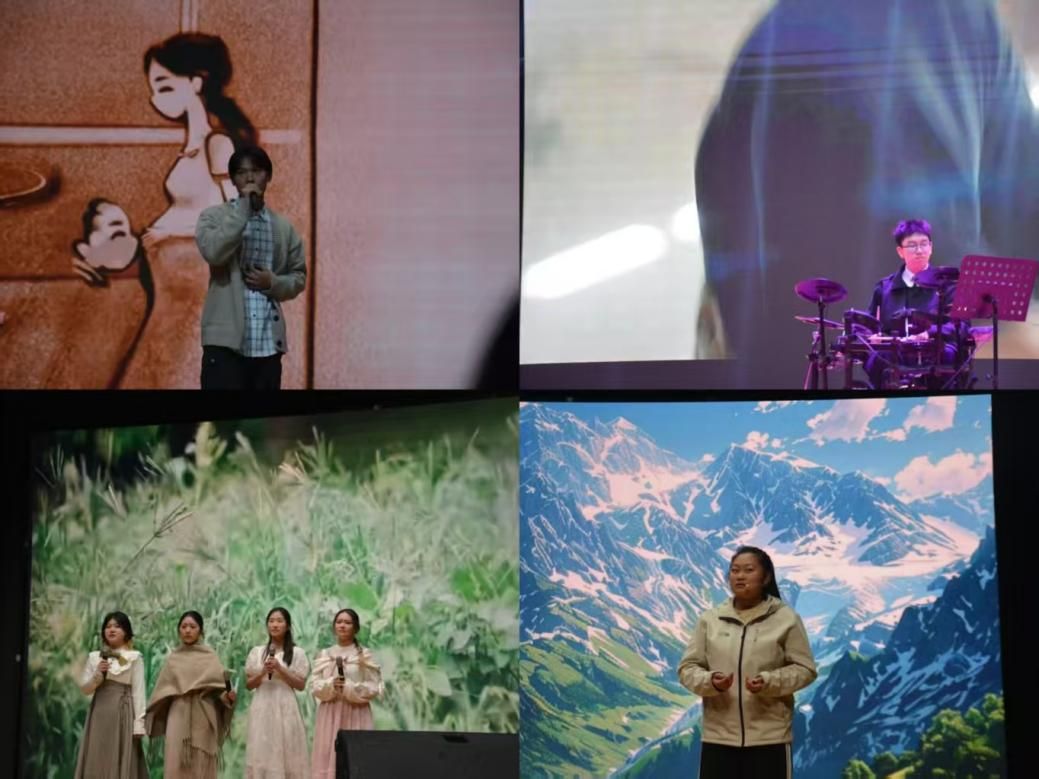 晚会以“美育铸魂、青春向党”为核心主线,在舞蹈《卡拉永远OK》激昂动感的节拍中拉开帷幕。舞者们身姿矫健、活力迸发,用利落的动作与饱满的热情点燃全场,展现出刑司青年蓬勃向上的青春朝气。歌曲《有我》以清澈坚定的嗓音唱响青年担当,旋律中蕴含的理想力量让现场凝聚力悄然生长;当《我爱你中国》的恢宏旋律响起,深情朗诵与嘹亮演唱交织共鸣,将家国情怀融入艺术表达,为晚会注入厚重的精神底色,也呼应了党代会召开之际,青年学子对党和国家的赤诚热爱。