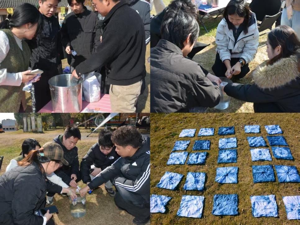 10时30分,队伍转场至东篱营地开启非遗体验之旅。10时40分起,扎染方巾实践正式展开,作为兼具实用性与艺术性的非遗项目,师生们在专业指导下构思图案、捆扎布料、浸染上色,亲手制作独一无二的文创作品,在指尖流转中感受传统文化的匠心魅力。12时许,自助烧烤环节热闹开启,从生疏摸索到熟练掌控火候,大家分工协作、分享成果,在烟火气中品味“自己动手、丰衣足食”的别样香甜。14时,师生们开始自由活动,在梁子湖的湖光山色中增进情谊、舒缓压力。17时,师生们满载收获与感悟乘车返程。